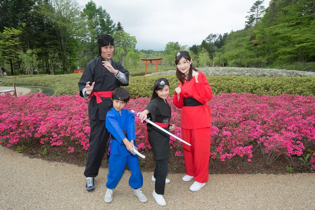 入園したらまず忍者コスチュームに着替えましょう(1人500円/日)。親子で忍者になりきりぜひ記念撮影を!