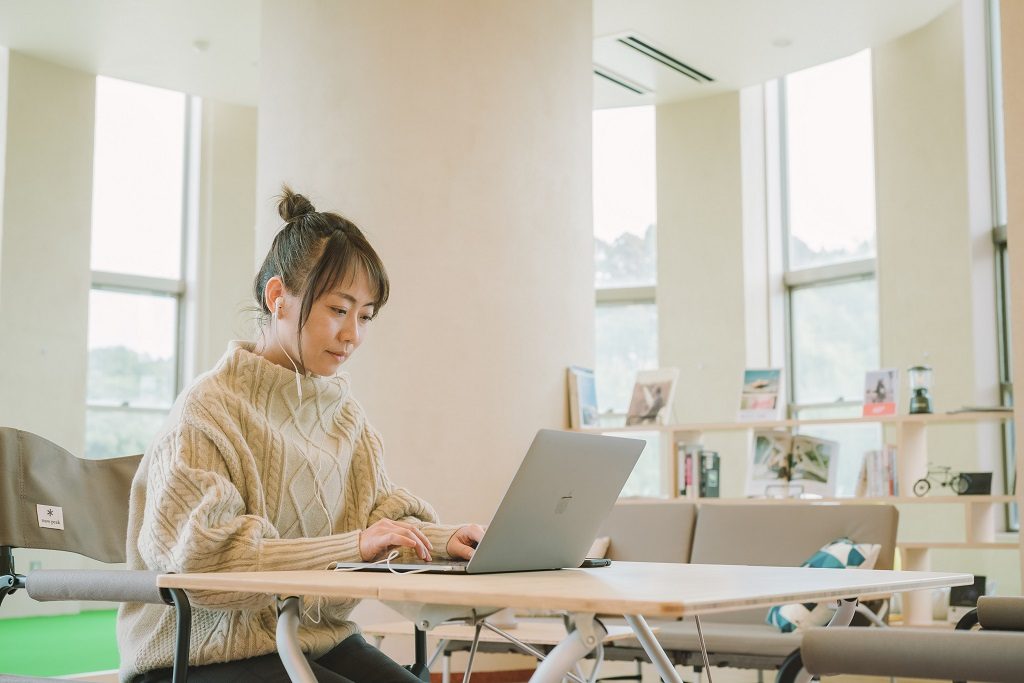 高千穂エリアでのテレワークなら、「高千穂町コワーキングスペース452」がおすすめ。店名についた「452」は、高千穂の方言で「仕事=しごつ」が由来。木の温もりを感じる穏やかな雰囲気のなか快適に仕事ができます。