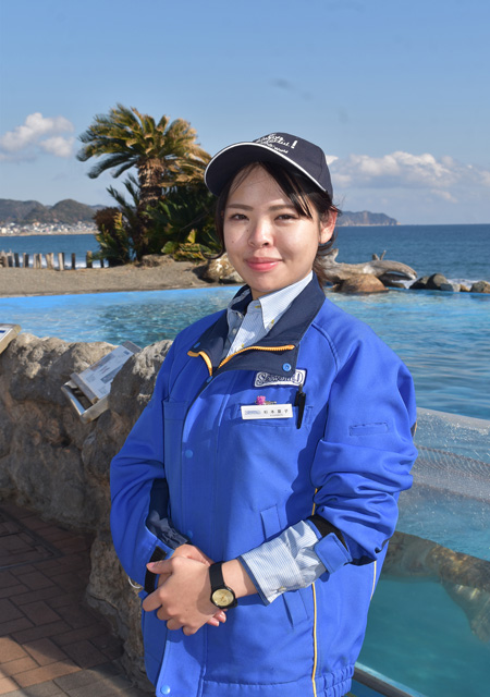 マーケティング室広報ご担当の杉本 夏子(すぎもと なつこ)さん。水族館が好きで2016年に鴨川シーワールドに入社。ホテル勤務などを経て2019年より広報のお仕事に。『身近にあるのになかなか見られない“水の中の世界”をご案内したいんです』