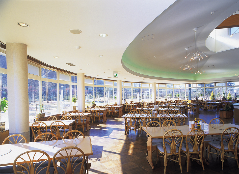 おでかけの楽しみのひとつといえるのが食事。レストラン「ウエステリア」では窓から満開の花を眺めながら、季節に合わせた和や洋の食事を味わうことができます。レストラン入口はスロープが設けられ車いすやベビーカーのまま入店が可能。広々とした店内でテーブルの高さも車いすのまま足が入るようになっています。