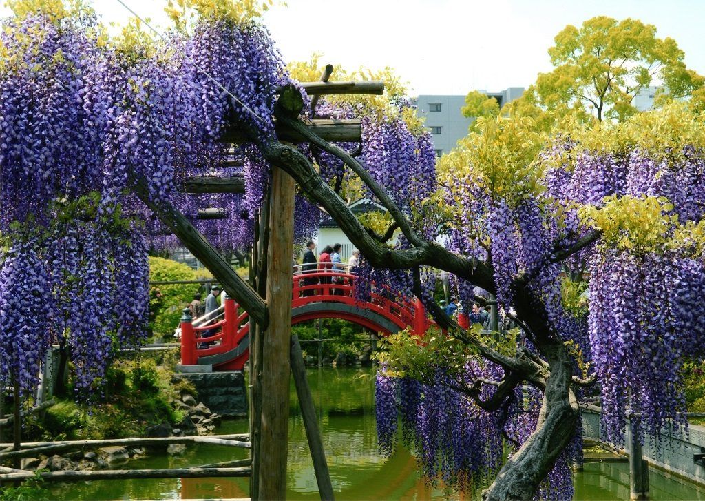東京都内で藤が鑑賞できるのが、菅原道真公を祀っている太宰府天満宮を本社にもつ亀戸天神社です。
