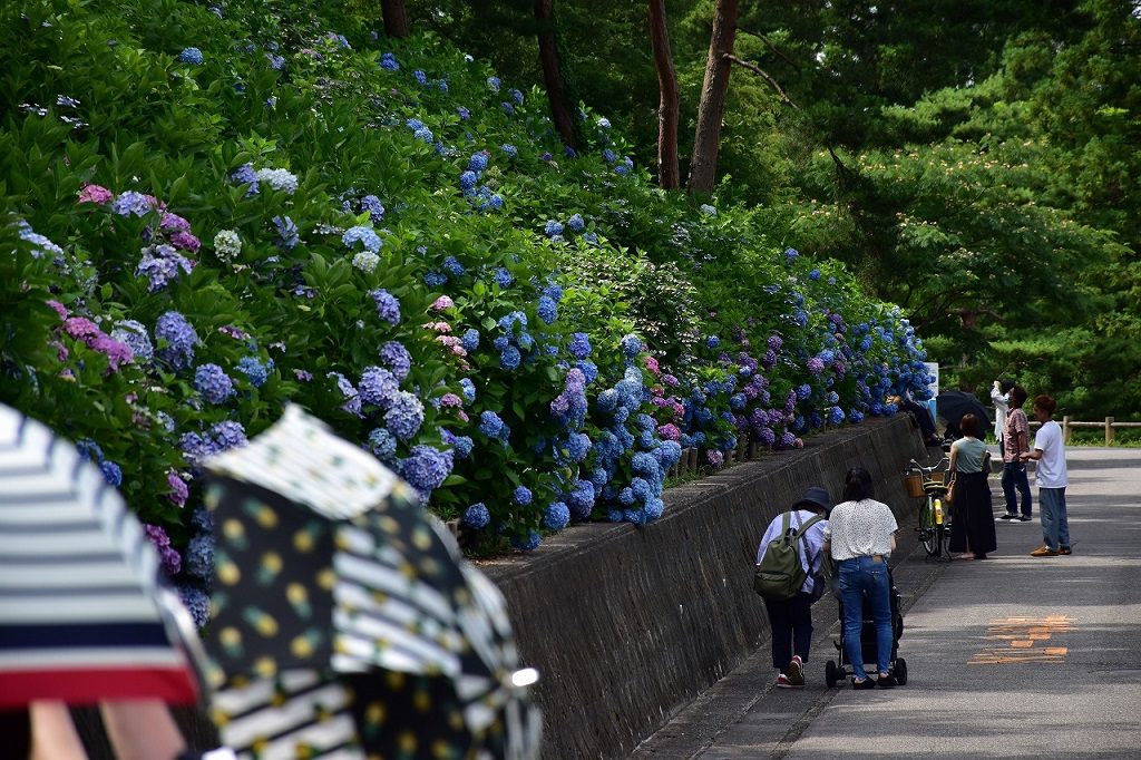 園内は四季の花が楽しめるようにさまざまな花木が植えられています。春には桜やつつじ、これからの季節は約6400本のアジサイが見ごろを迎えます。秋には紅葉やカエデなど、四季折々の花がいつでも訪れる人を楽しませてくれます。