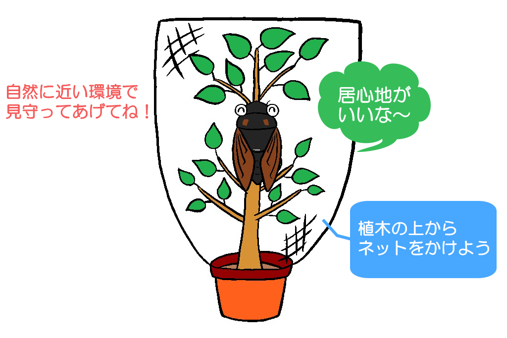 そして、一番の注意点は鳴き声。セミのオスは大きな声で鳴くため、飼うときは家の人としっかり相談してからにしましょう。