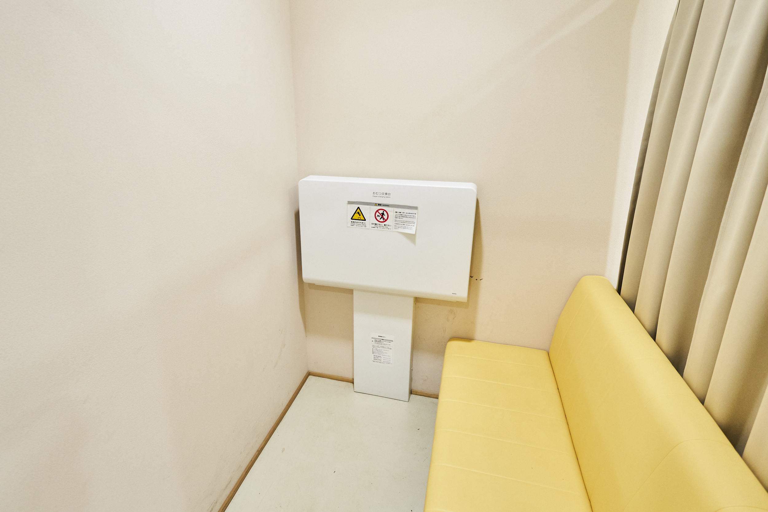 正門のすぐ近くにある公園サービスセンターに授乳室があり、乳児連れのファミリーも安心です。部屋はカーテンで2つのスペースに区切られており、同時に2組が利用可能。片方のスペースにはソファとおむつ替え用のベビーシートが、もう片方には机とテーブルが備えられています。