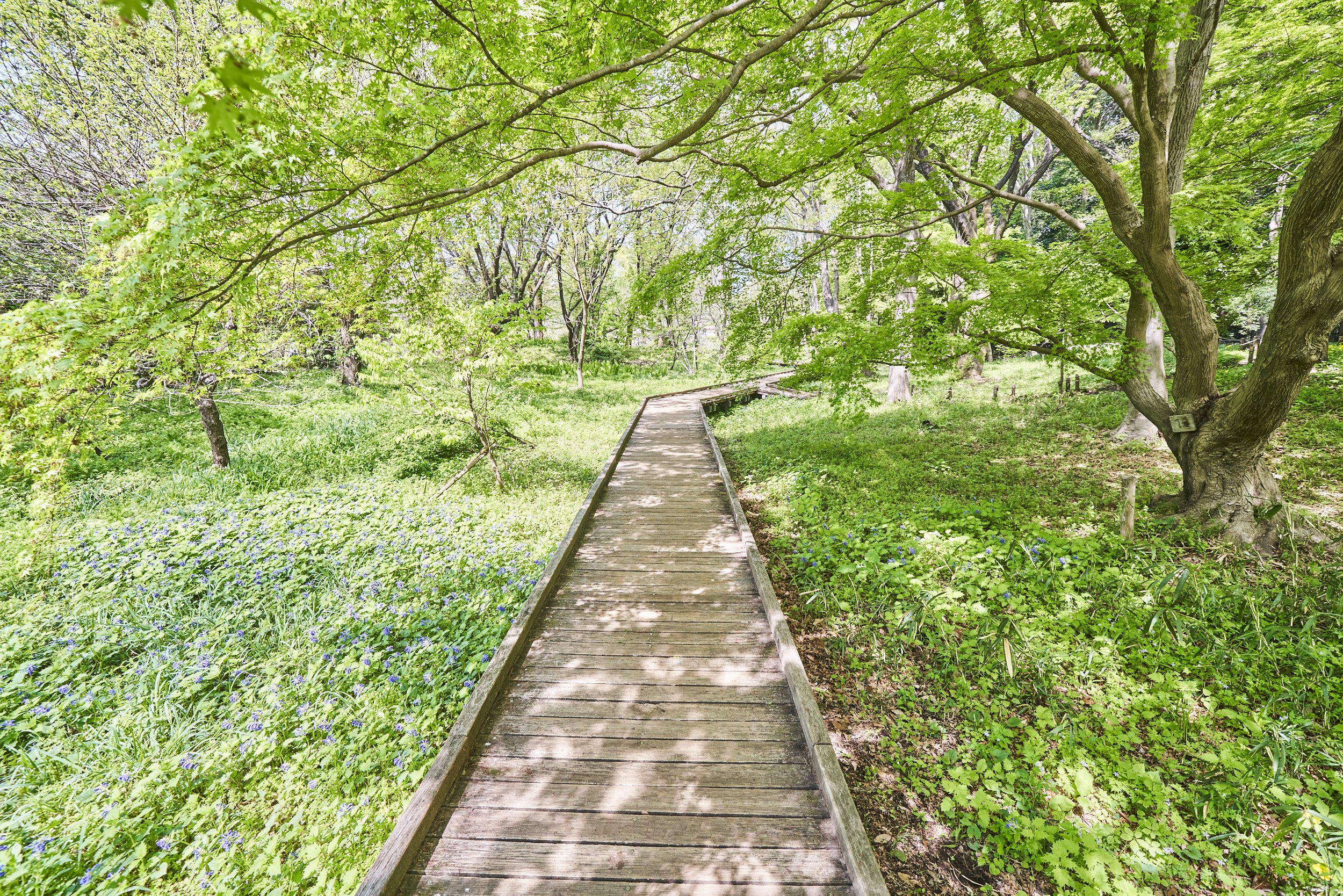 園内には湧水がつくる湿地が点在し、ここに自生する野草はなんと約400種。木道を歩きながら、四季折々の草花や野鳥、昆虫などが観察できます。図鑑片手に歩いてみれば、植物博士になれそう。