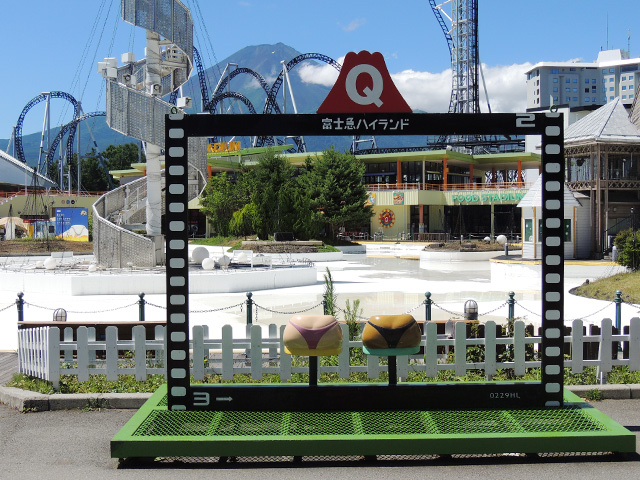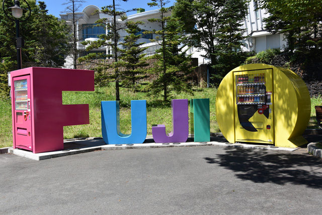 自動販売機が「FUJIQ」という文字のオブジェになっています。園内には“遊びゴコロ”あふれるフォトスポットがいっぱい