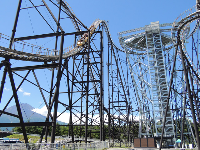 コースターの「FUJIYAMA」の寄り添うようにそびえ立つ「FUJIYAMA タワー」