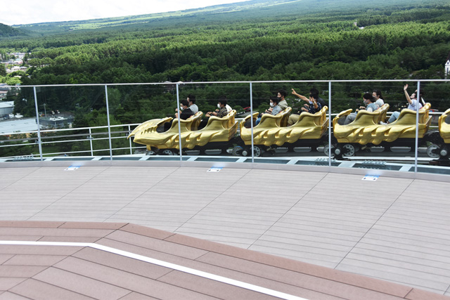 「FUJIYAMA スカイデッキ」はカメラやスマホは持ち込みOK。「FUJIYAMA」の走っているシーンを撮影できます