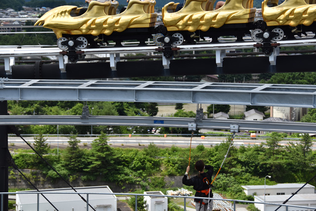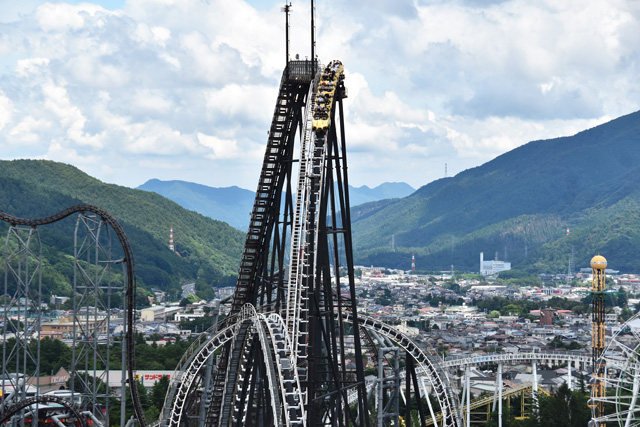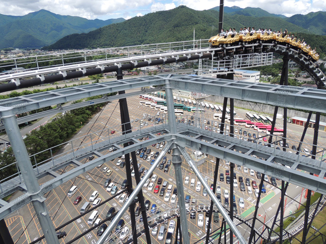 「FUJIYAMA」が落下するシーン。これを、この高さから撮れるのは「FUJIYAMA スカイデッキ」ならでは