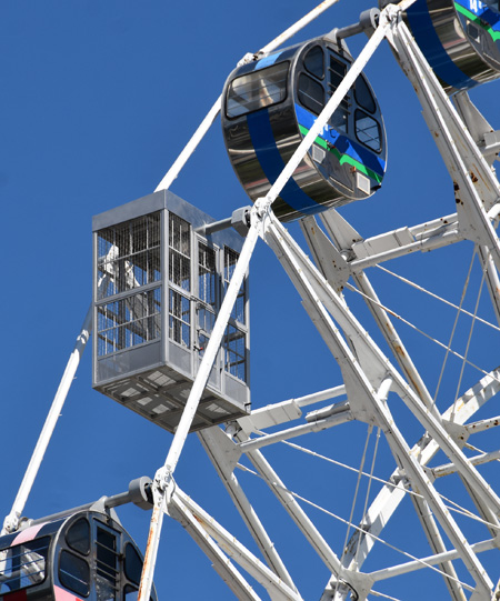 大観覧車「シャイニング・フラワー」に3種目のゴンドラができました。通常のゴンドラ26台と、透明ゴンドラ「スケルちゃん・スクムちゃん」4台に加え、2台が牢屋スタイルの、お仕おき観覧車「牢ごくん・監ごくん」となったんです。