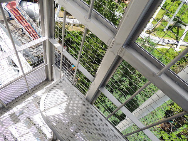 牢屋の中は…壁面が檻状のステンレス網で、真下も透けて見えます