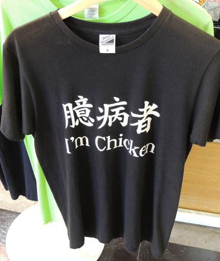 “臆病者”Tシャツ2200円。ココのTシャツは傑作揃いです