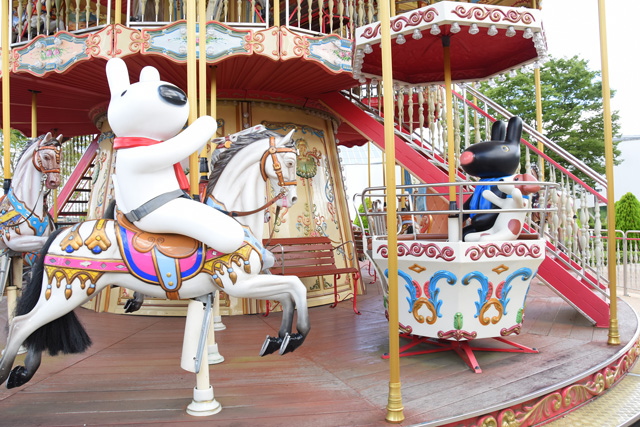 わんちゃんも一緒に乗れます(わんちゃん800円)。ちなみに「メリーゴーラウンド」も同乗可能です