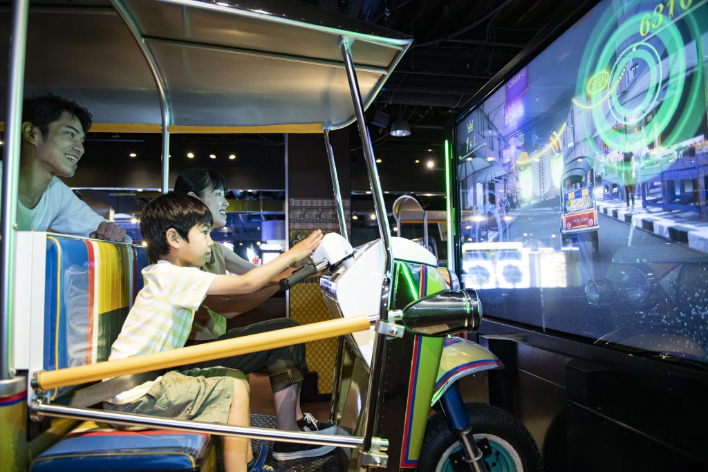 タイのタクシー「トゥクトゥク」ライドに乗り込んで賞金を稼ぐ新感覚のアトラクション! 最大4人まで乗車できるので、家族みんなで楽しむのもおすすめです。