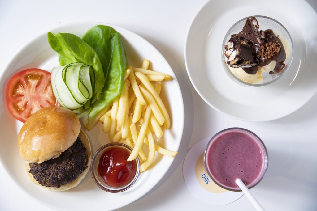 シーサイドデッキに面した「bills」は、全国に8店舗展開するオーストラリア・シドニー発のオールデイダイニング。洗練されていながらリラックス感満点のインテリアも、おでかけ気分を盛り上げてくれます。通路も広々としているのでベビーカーも入れやすく、ベビー連れでも安心です。限定店舗のみで提供されている「キッズメニュー」は、メイン・デザート・ドリンクをそれぞれ3種類からチョイス可能。子どもだって大人みたいにメニューを選びたいよね、という発想から生まれたメニューです。平日は朝9時から、土・日・祝日は8時からオープンしているのもうれしい!