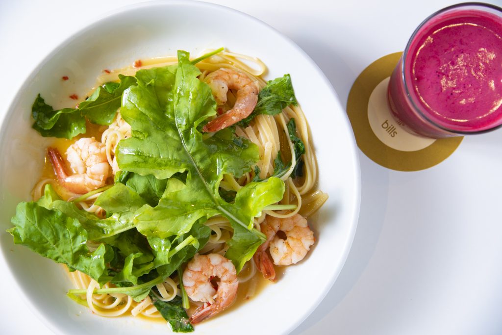 「エビとルッコラのリングイーネ – ガーリックチリオイル、バター、レモン」ランチ1700円、ディナー1720円。