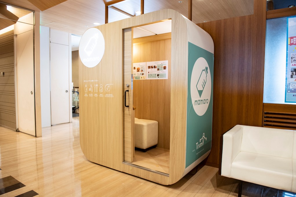レストランフロアであるシーサイドモール5Fに設置された、授乳・離乳食・おむつ替えなどに利用できる完全個室のベビーケアルーム「mamaro」。ご飯を食べているときに、急に赤ちゃんが泣きだしても安心です。