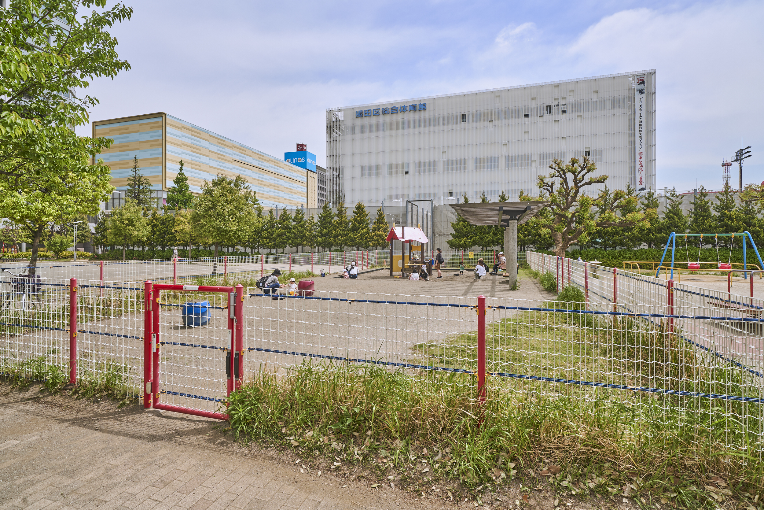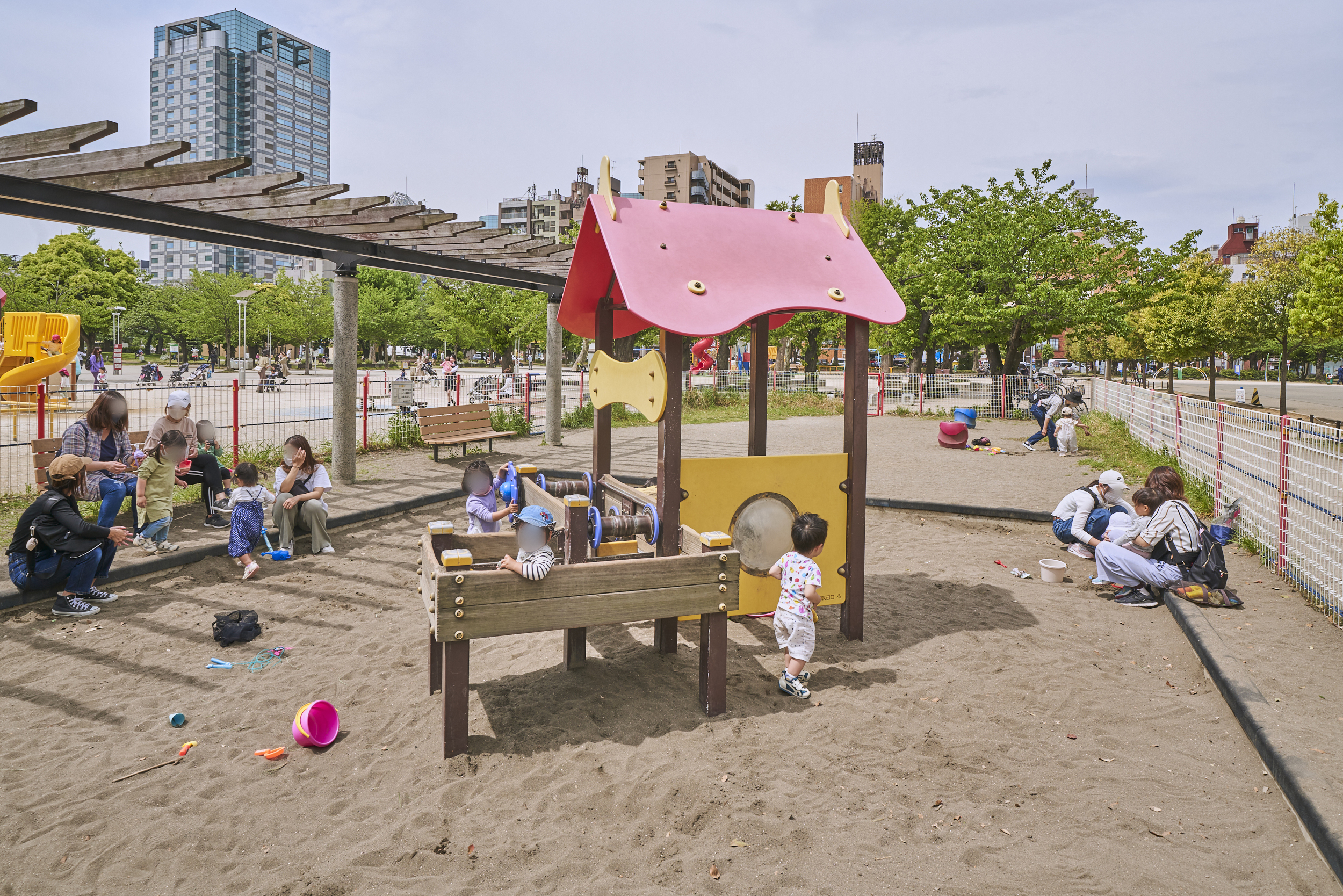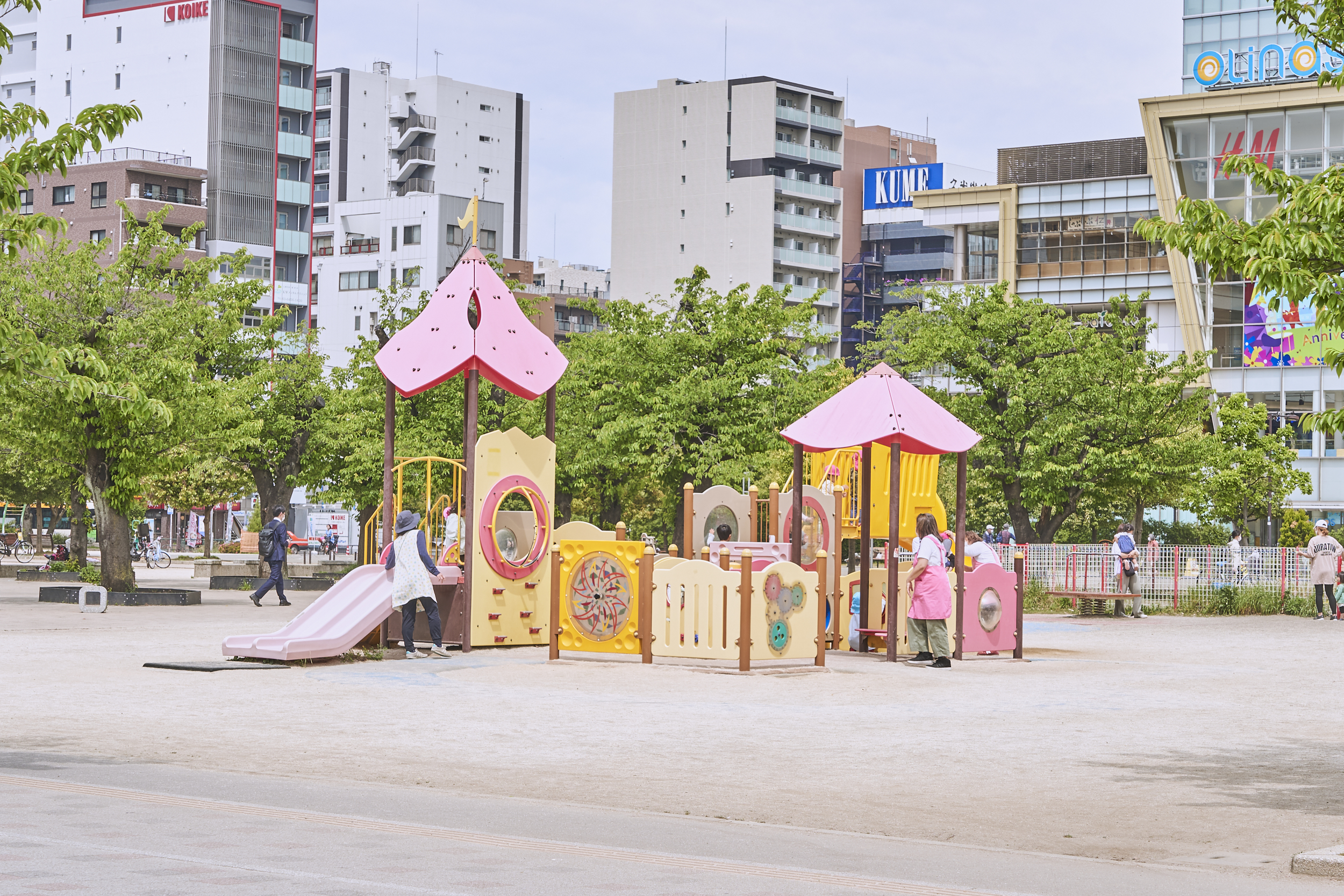 東京メトロの駅から直結と、超好アクセス。複合遊具で遊びつつ、芝生広場でのんびりもでき、電車を乗り継いで訪れる価値のある公園です。再開発の進んでいる錦糸町駅には商業施設もたくさんあるので、公園遊びを楽しんだ後はパパママのショッピングを楽しむこともできそうですよ。