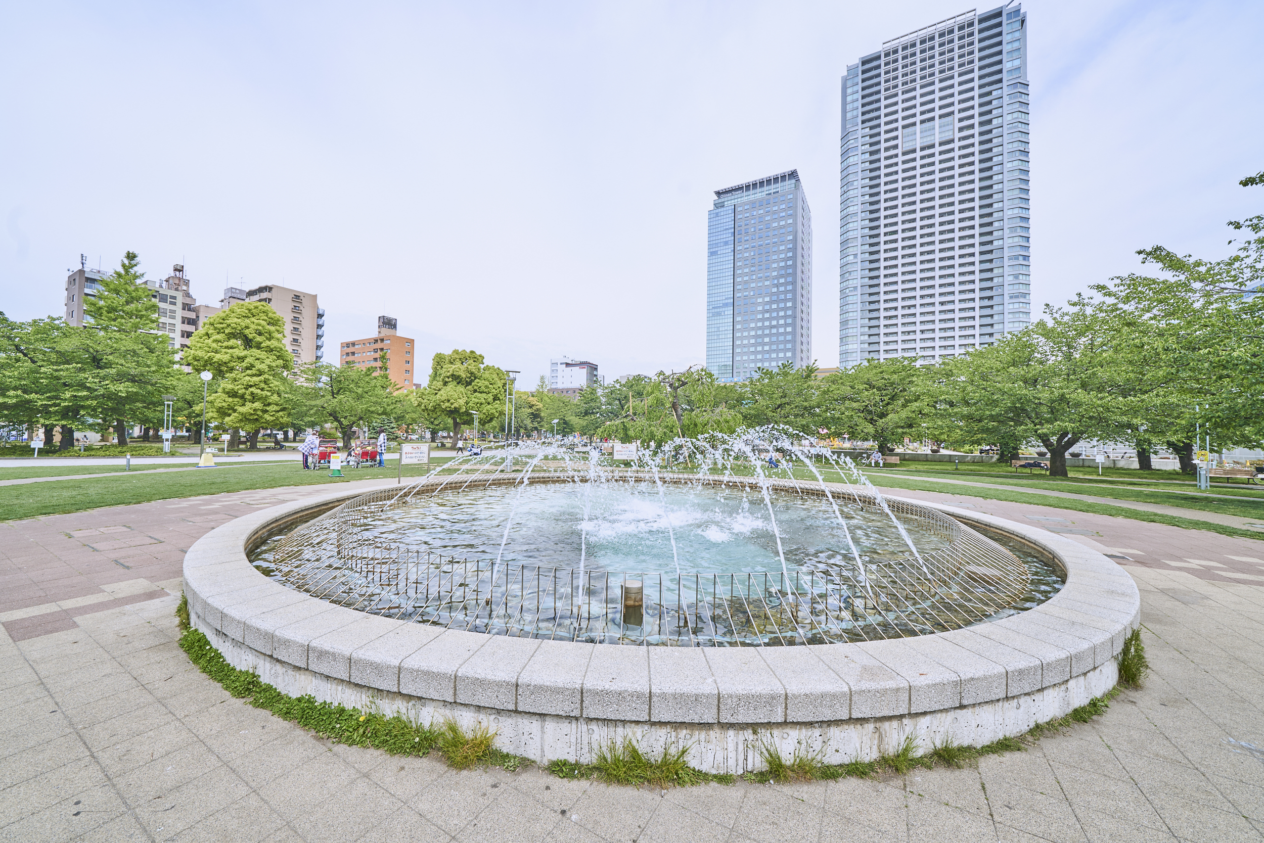 噴水を囲んだ芝生が気持ちいい「水と緑と花の広場」