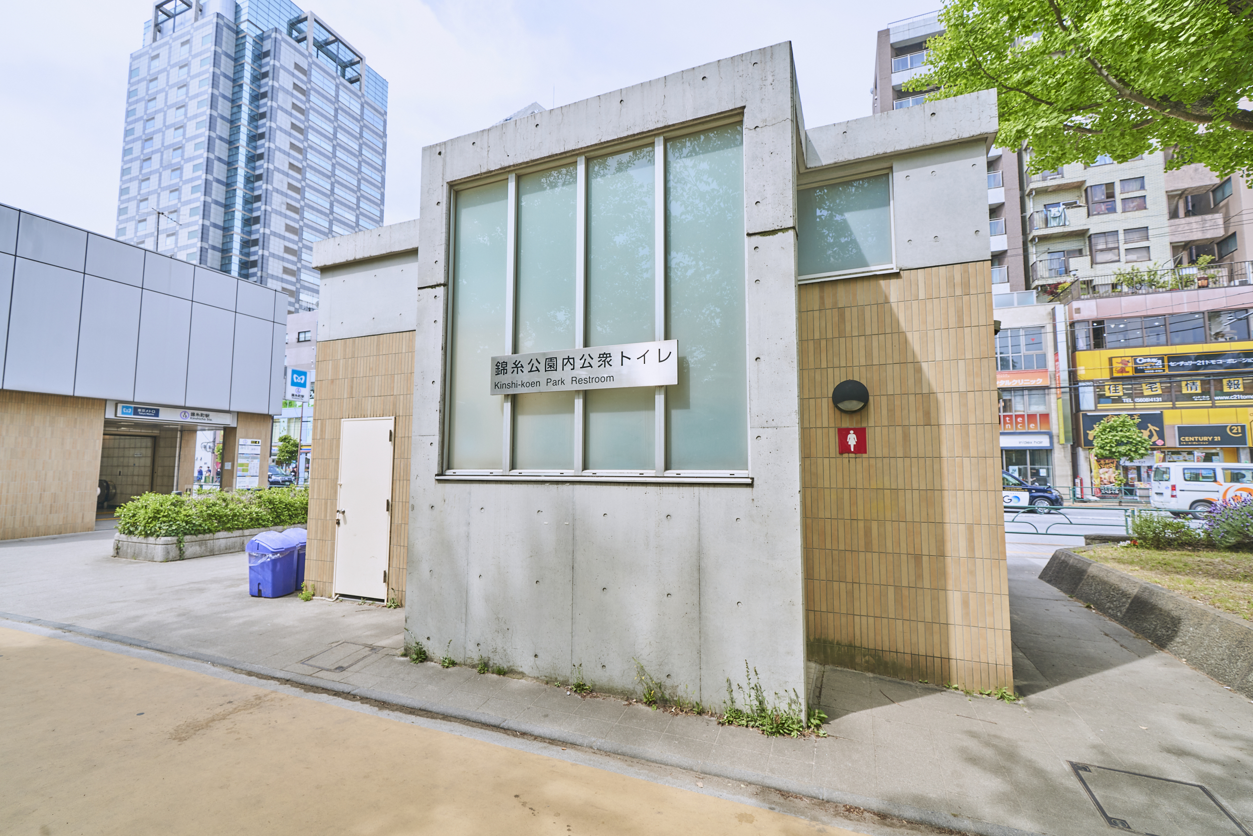 駅から出てすぐ、公園入口に公衆トイレがあります。電車で訪れた場合は、公園で遊ぶ前と公園で遊んだ後に立ち寄りやすい場所にあるのがうれしい!
