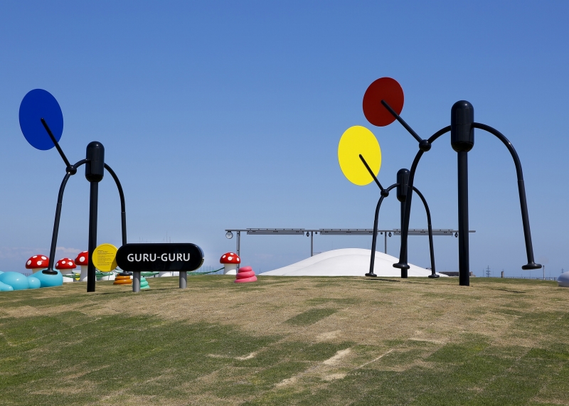 赤ちゃんから楽しめるキッズルームはつみきや絵本がいっぱい! 少し大きくなったら体の動きに合わせて壁面にアートを創り出せる「3Dドローイング」、そして屋上庭園「オノマトペの屋上」。ここには「ぼこぼこ」「ぐるぐる」「ふわふわ」などオノマトペを形にした独創的な遊具が人気です。
