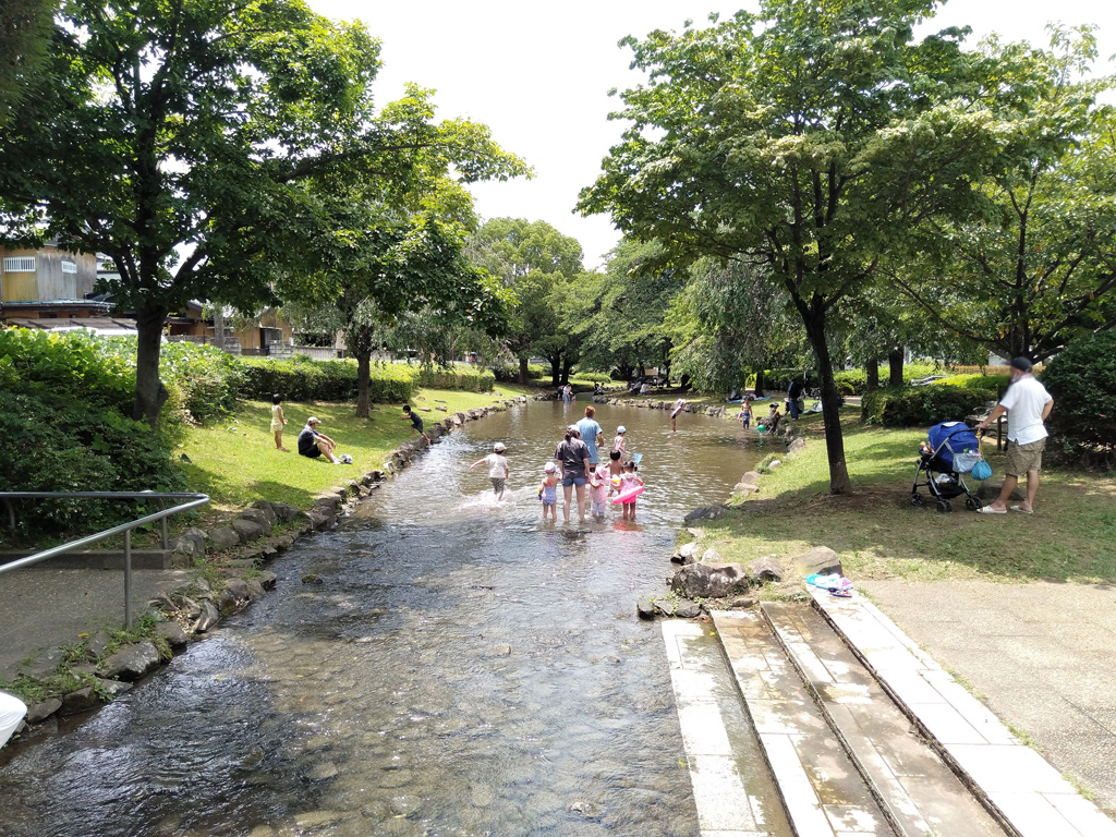 都市部にありながら、まるで里山に来たような自然豊かな雰囲気に包まれている埼玉県さいたま市の「東大宮親水公園」。緑の木々が水辺まで迫り、全長約250mにもおよぶ小川がゆるやかに流れるのどかさは、水遊びするのに絶好のロケーションです!