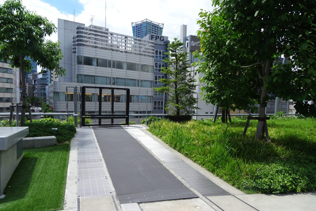 2019年に西武鉄道池袋線をまたいで建設されたオフィスビル。2階のデッキは誰でも出入り自由で、ビル1階や外階段から訪れることができる。三面の壁がガラス張りになっており、ラビューをはじめとする西武鉄道の車両が、足元をもぐるように走行する様子は圧巻。山手線や湘南新宿ラインなど、JR線の走行も眺められる。デッキにはベンチや芝生もあり、平日から親子連れで賑わう。