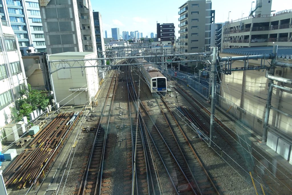 反対側も真っ直ぐ伸びる線路がよく見える。日暮里駅がすぐ近くに