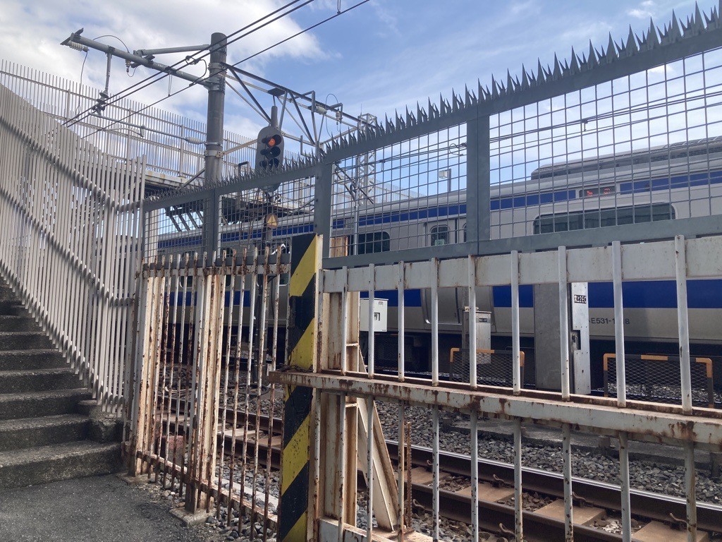 階段下は、すぐ横に線路が通る。この視点からの電車観賞も楽しい