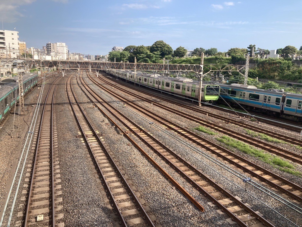 - 走行中の電車が見える/JR山手線、京浜東北線、湘南新宿ライン、埼京線、成田エクスプレスなどが見られる