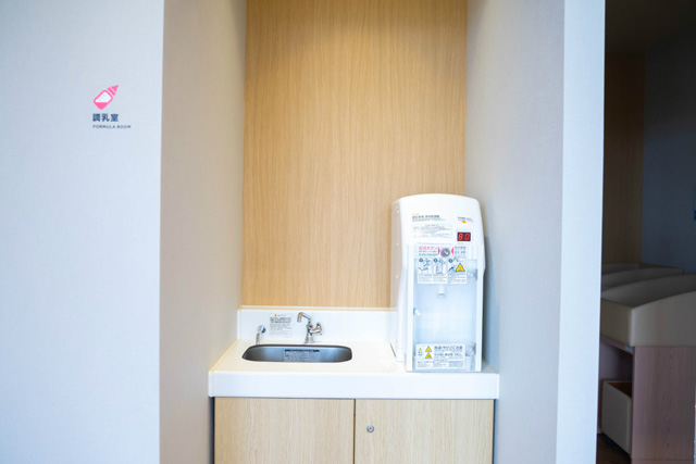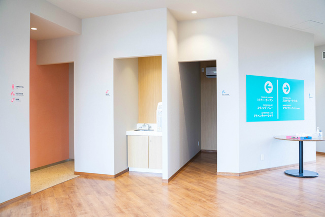 総合受付がある棟では赤ちゃんのためのサービスも完備。キッズ用トイレやベビーキープを設置したトイレがあるのはもちろん、おむつ交換室や調乳室もあり、小さな子どもを連れていてものびのびと過ごせそうです。