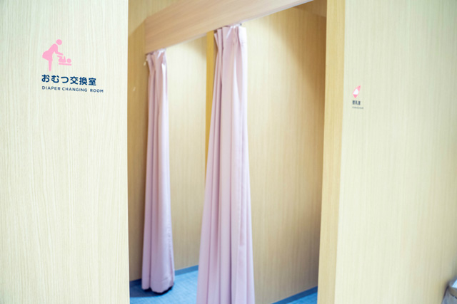 授乳室はカーテン付き。中も広々として安心しておむつ替えができます
