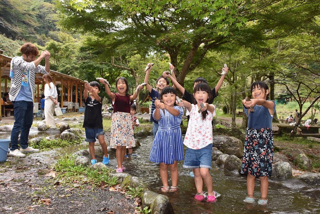 また、夏場は川の浅瀬で水遊びもできます。つかみ取りの順番待ちや調理待ちの間など遊べるタイミングがたくさんあるので、ぜひ水着を準備して行きましょう。子どもたちの喜ぶ姿が見られますよ。