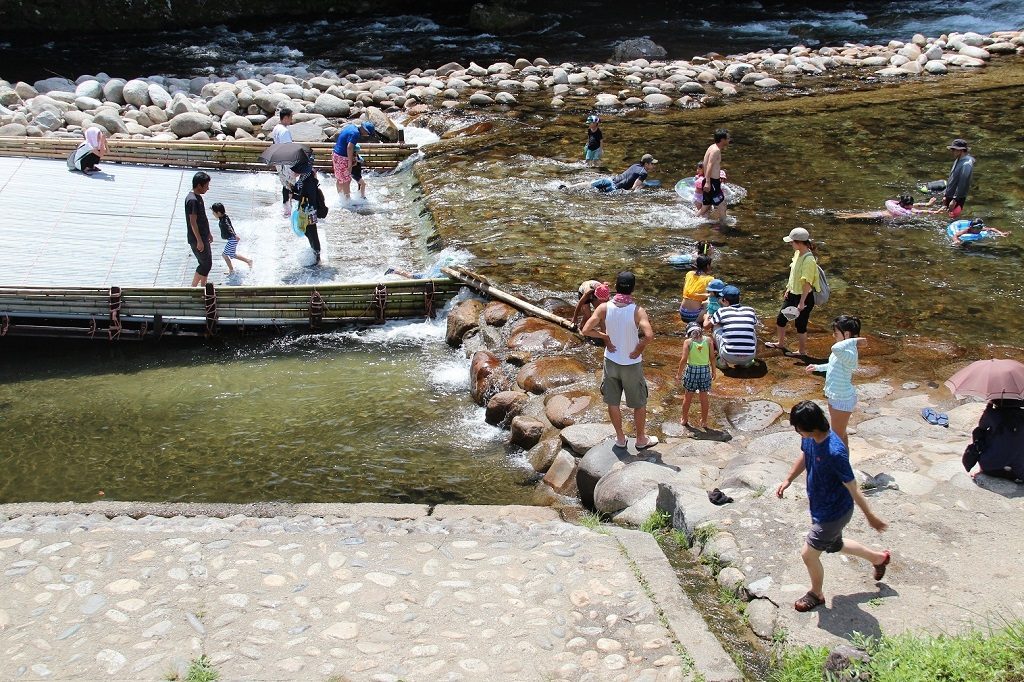 夏場なら、水着を持って行けば食事後にやなのそばで川遊びも楽しめます。