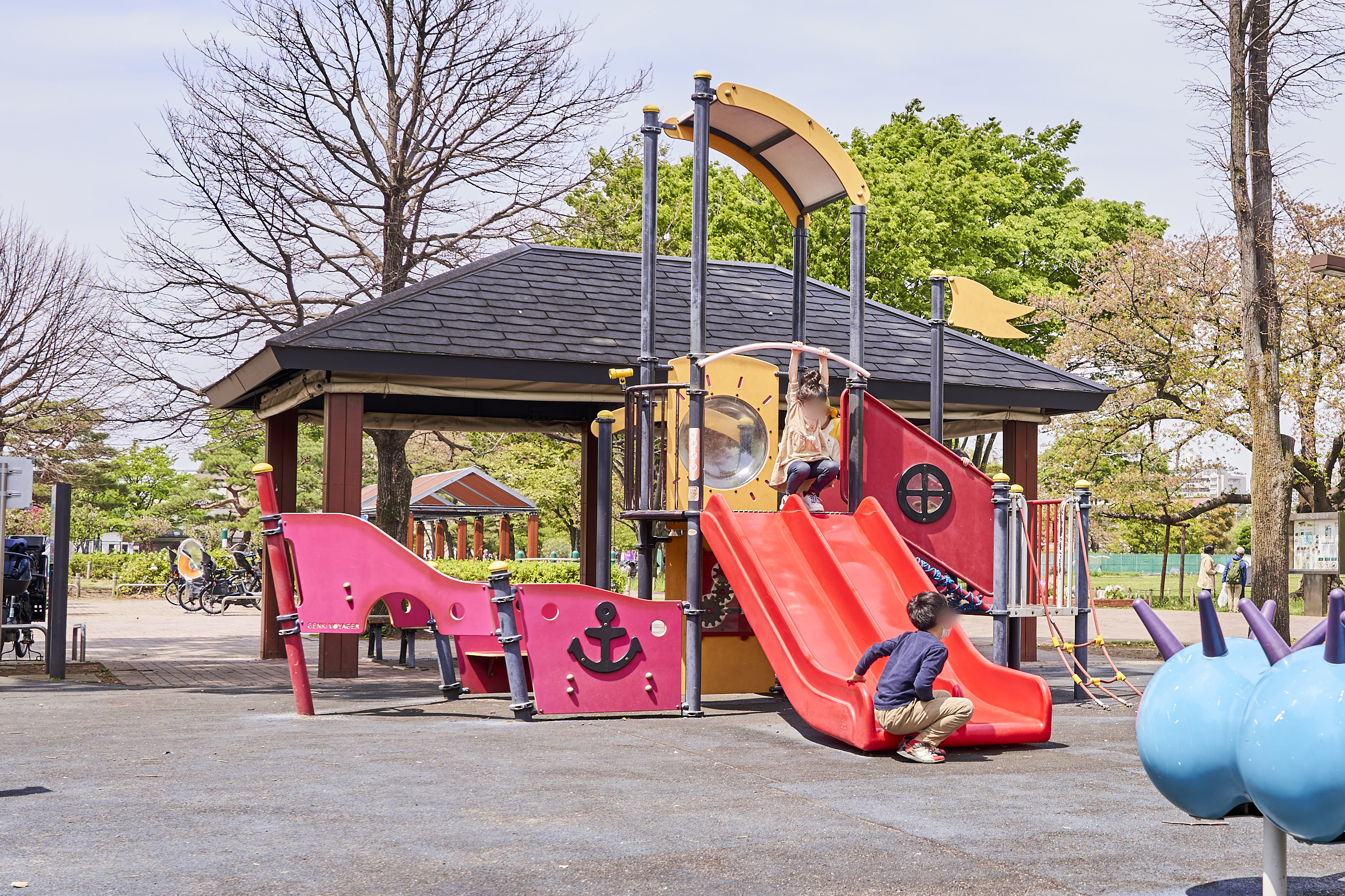 3~6歳くらいの子どもなら、まずは「遊具広場」がおすすめです。コンパクトなスペースですが、人気の滑り台などは順番待ちになることもあるので、時間のゆとりをもって満足ゆくまで楽しんで。「原っぱ広場」では、思いっきり駆け回ったり、木陰でピクニックしたり、広い芝生を満喫しましょう。ほかにも、気持ちのいい園内を散歩してみると、小さな丘や健康遊具などもあり、遊びたくなる場所がきっと見つかります。