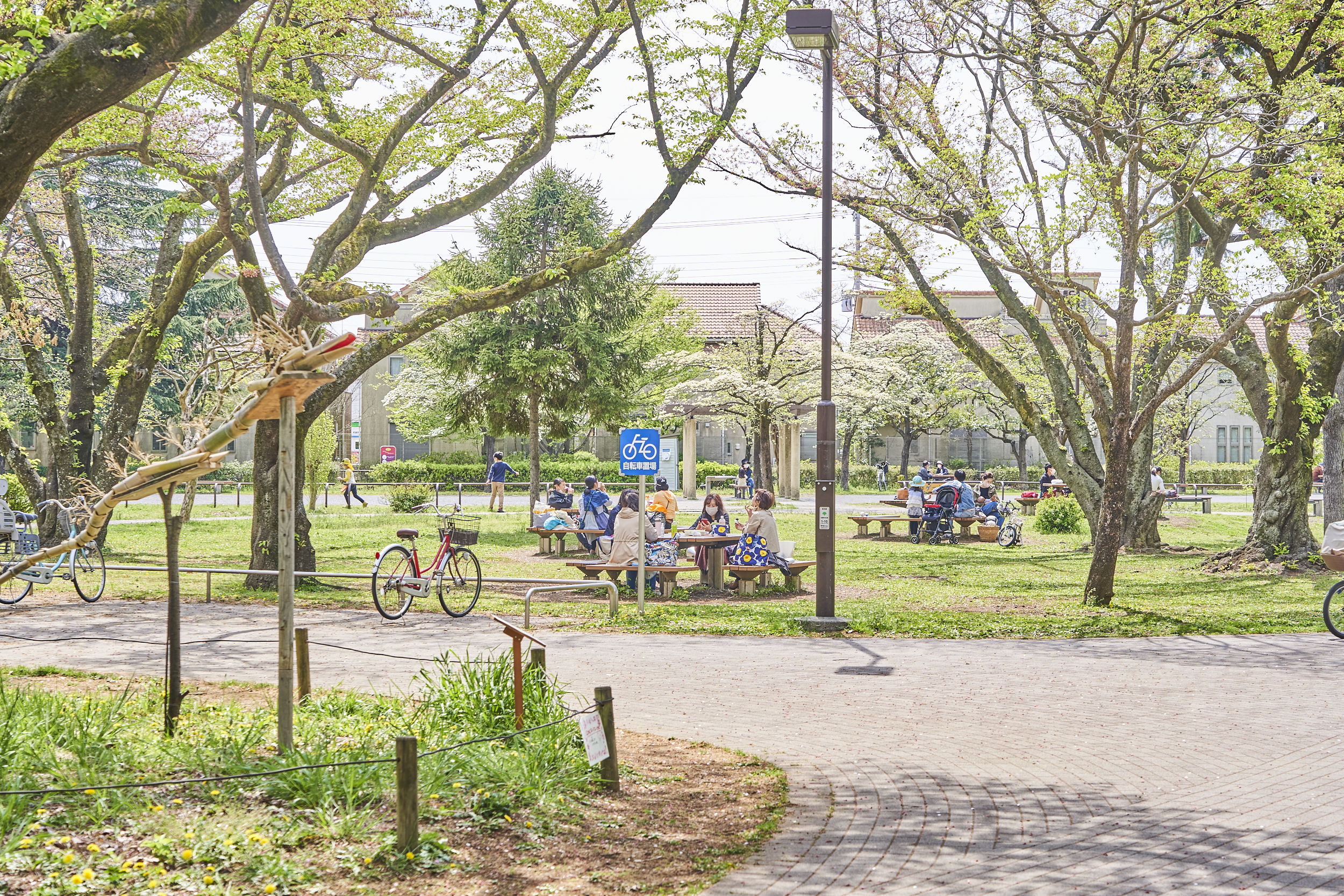 春にはサクラをはじめとした花々に彩られ、お花見スポットに。ふかふかした芝生の上をのびのび走り回ろう!