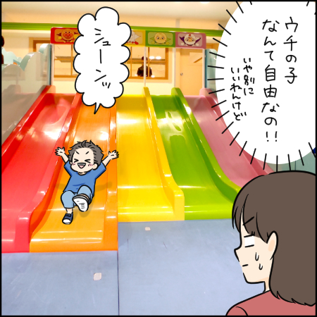 5話にわたる 「神戸アンパンマンこどもミュージアム&モール」レポ漫画、2話目はステージと虹のすべりだいをご紹介します。