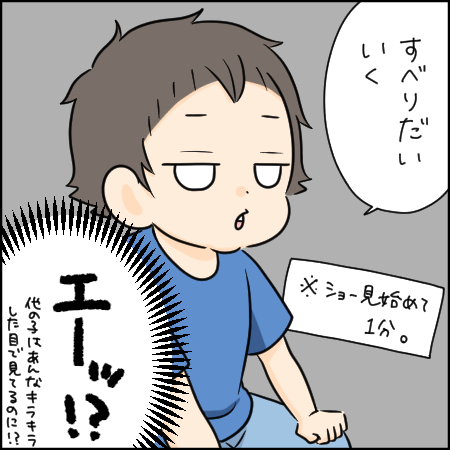 息子くんはこんな様子ですが、ほかのお子様たちは皆目をキラキラさせながらショーを楽しんでいました!