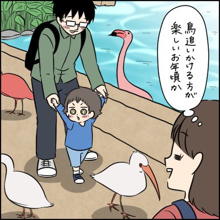 1歳児にはバードショーは少し早かったようですが、目の前を歩く鳥さんに夢中!柵もなく放し飼いされている鳥たちと、まだまだ拙い歩きで鳥の後を追う子どもの姿は必見です♪