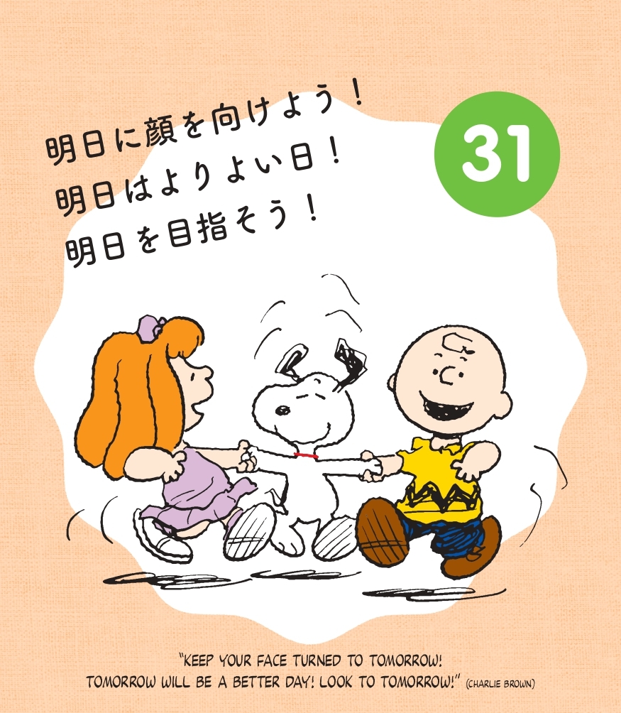スヌーピーたちの言葉で、その日の心が癒される日めくりカレンダーです。名言は日本語と英語の併記です。