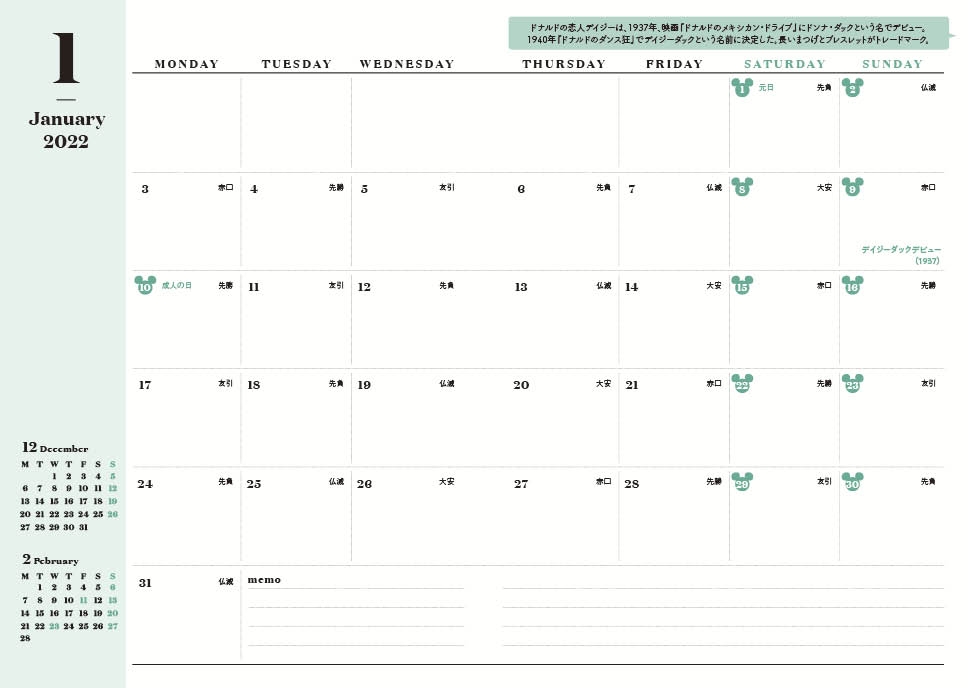 スケジュール帳(2021年10月~2023年3月)には、ディズニーキャラクターのデビュー日やディズニーパークのオープン日など、ディズニーに関連する記念日をふんだんに掲載。「元気になれる!」と毎年好評の、ウォルト・ディズニーの名言も楽しめます。巻末には、ディズニーのスペシャルコンテンツとして、オールカラーの世界のディズニーパークガイドが! シンプル&かわいいデザインで、ビジネスシーンでも使えるディズニー手帳です。