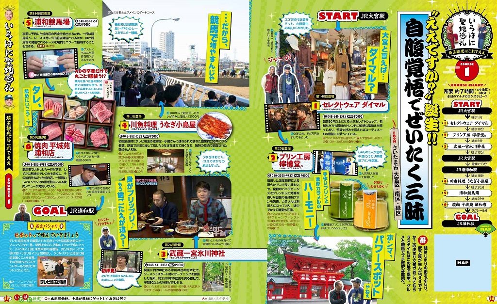 本誌では主に番組内で登場したロケ地を“聖地”と崇め、モデルコースとして巡礼。各地に点在する聖地を一日かけて回る、埼玉県の新しい遊び方を提案します。忘れられない番組内の名シーンも要所要所で収録!