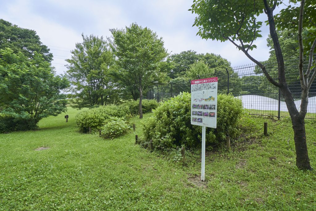 つつじ山広場は、春に一斉に咲き誇るツツジとハナミズキが見事な広場。「ふわふわドーム」のまわりには、文京区の六義園から挿木繁殖して植えられたさまざまな品種のツツジの木も見ることができますよ。