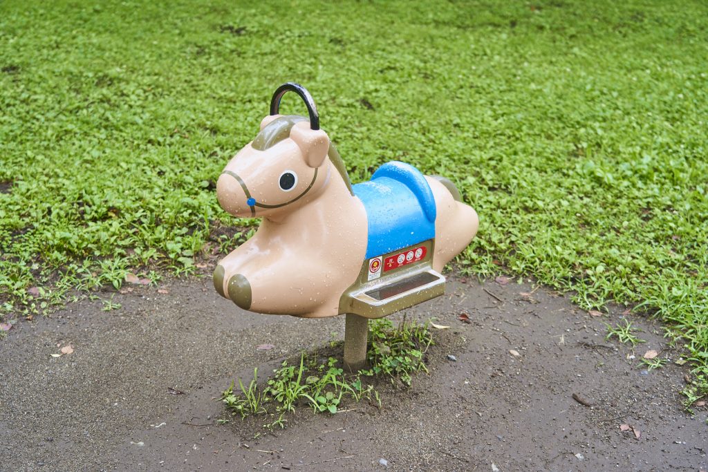 かわいらしい馬のスプリング遊具。ゆらゆら揺らして遊びましょう。