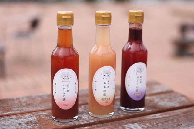 飲む酢(いちごの恋/ももの恋/ぶどうの恋) 各950円(200ml)