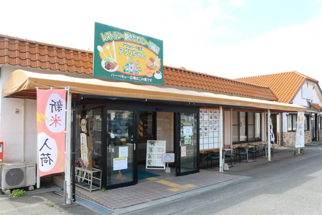 施設の駐車場左手には、レストラン「アグリちゃん」があり、本場近江牛にこだわったランチメニューが楽しめます。