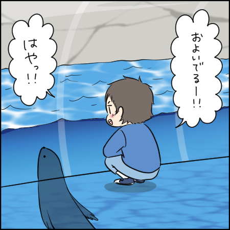 はじめましてイルカ。空高く飛ぶ海獣に何思う? / いつまでたっても出てこない!息子、オットセイに出会う / ぶつかろうがお構いなし!睡眠第一のアザラシたち / 子ども目線で楽しめる水槽がいっぱいで大はしゃぎ!