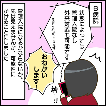 NICUがある病院で「状態によっては出産まで外来で対応できる」というところが見つかりました! 先はどうなるかわかりませんが、できるだけ長女の生活に影響がないようにしたい。可能性に賭けてみることにしました。どうか管理入院になりませんように!