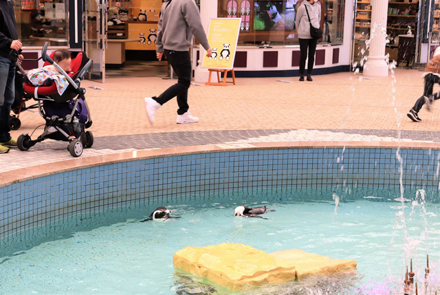 身軽になって、準備が整いました。おや?エントランスドーム中央のプールではペンギンがお出迎えをしてくれています。