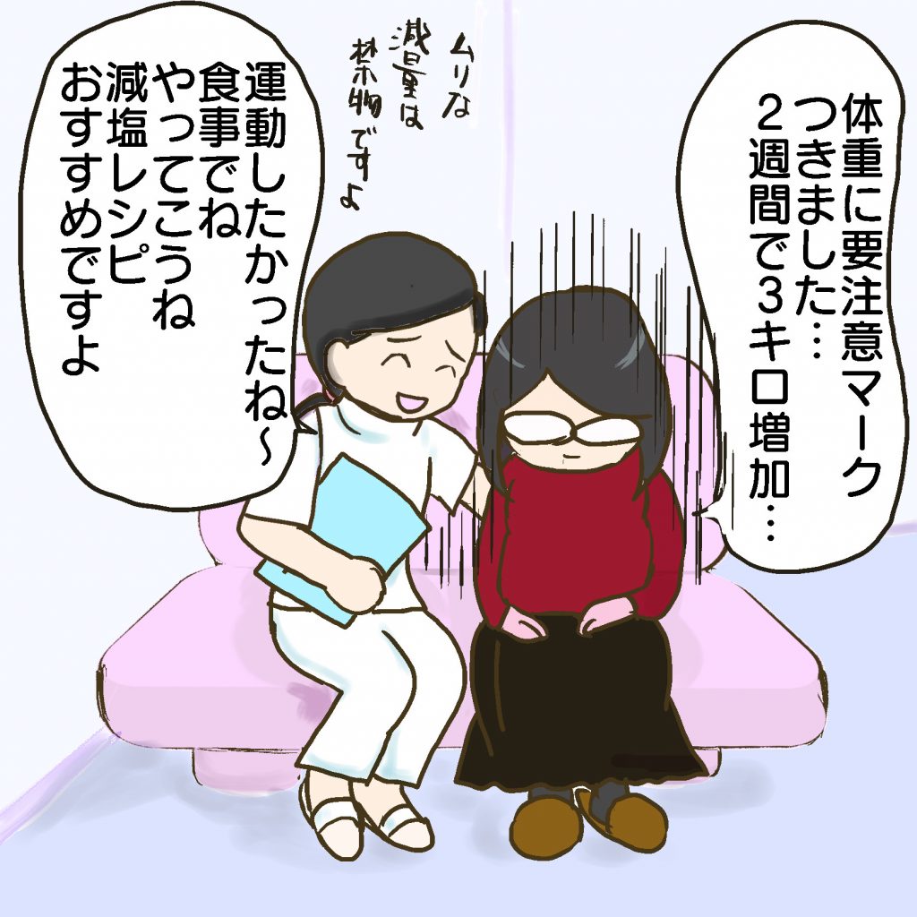 運動はダメでした。長女のときは妊娠中も動くように言われていたのに、双子妊娠ではNG。日常生活レベルでの散歩はOKですが、がっつりしたウォーキングは原則禁止。スクワットなどご法度。体重へのアプローチは主に食事で行うことになりました。病院からの帰りに減塩レシピ本を大量に購入しました(笑)